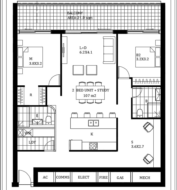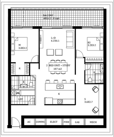 Disclaimer: The specified items listed are indicative only. The Developer Group reserves the right to make changes to generally equivalent products or finishes subject to availability. This plan and any areas shown are subject to the terms of the contract of sale and are subject to amendment and dimensional change. All dimensions are approximate, areas indicated are determined in accordance with the Land Title Act of Queensland (1994) method of measurement guidelines for measuring floor space in residential premises. Fittings, finishes, fixtures and specifications are also subject to change without notice. Images of furniture are for illustrative purposes only. Furniture is not included in the sale. Views will vary depending on the position of the lot within the building. Each of the developer, builder and agent do not warrant that views will not be impacted by future development.